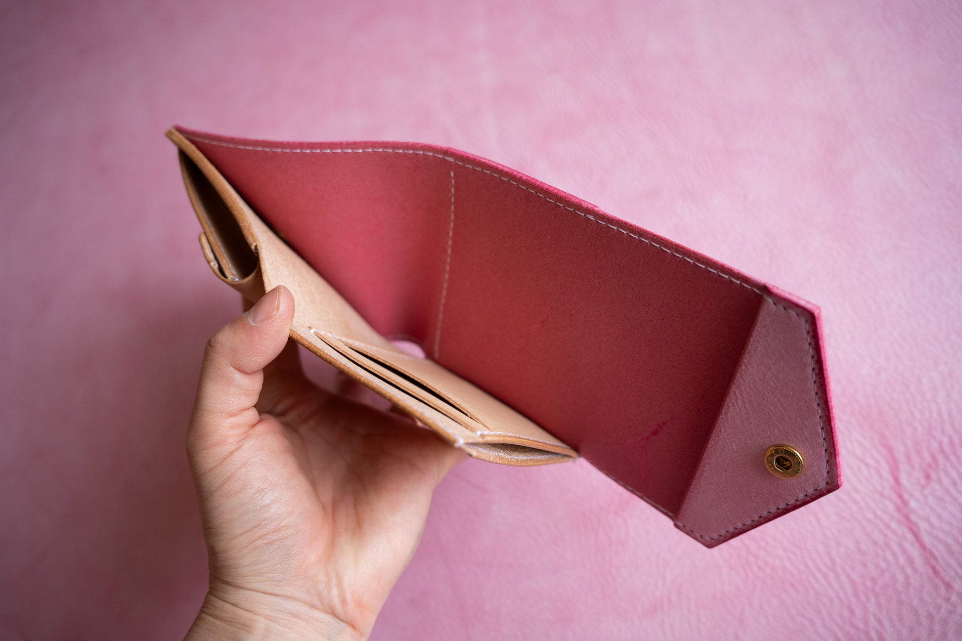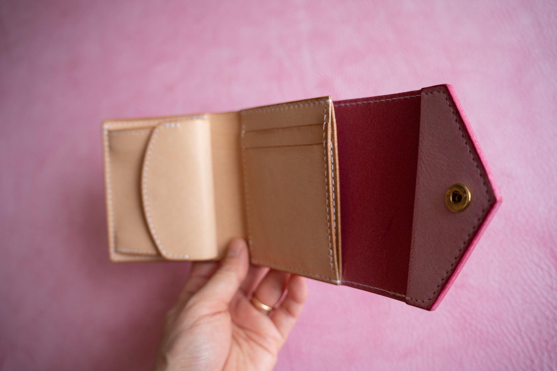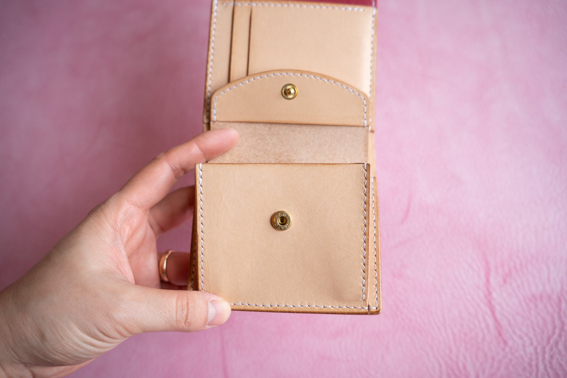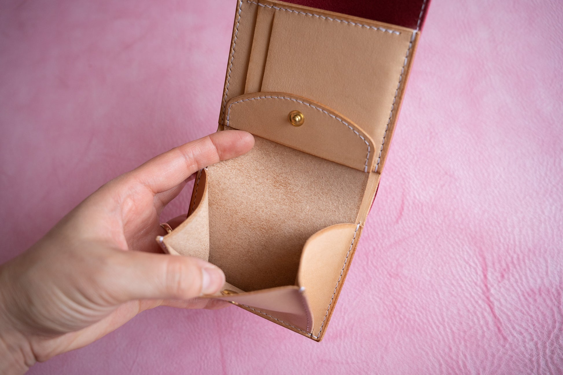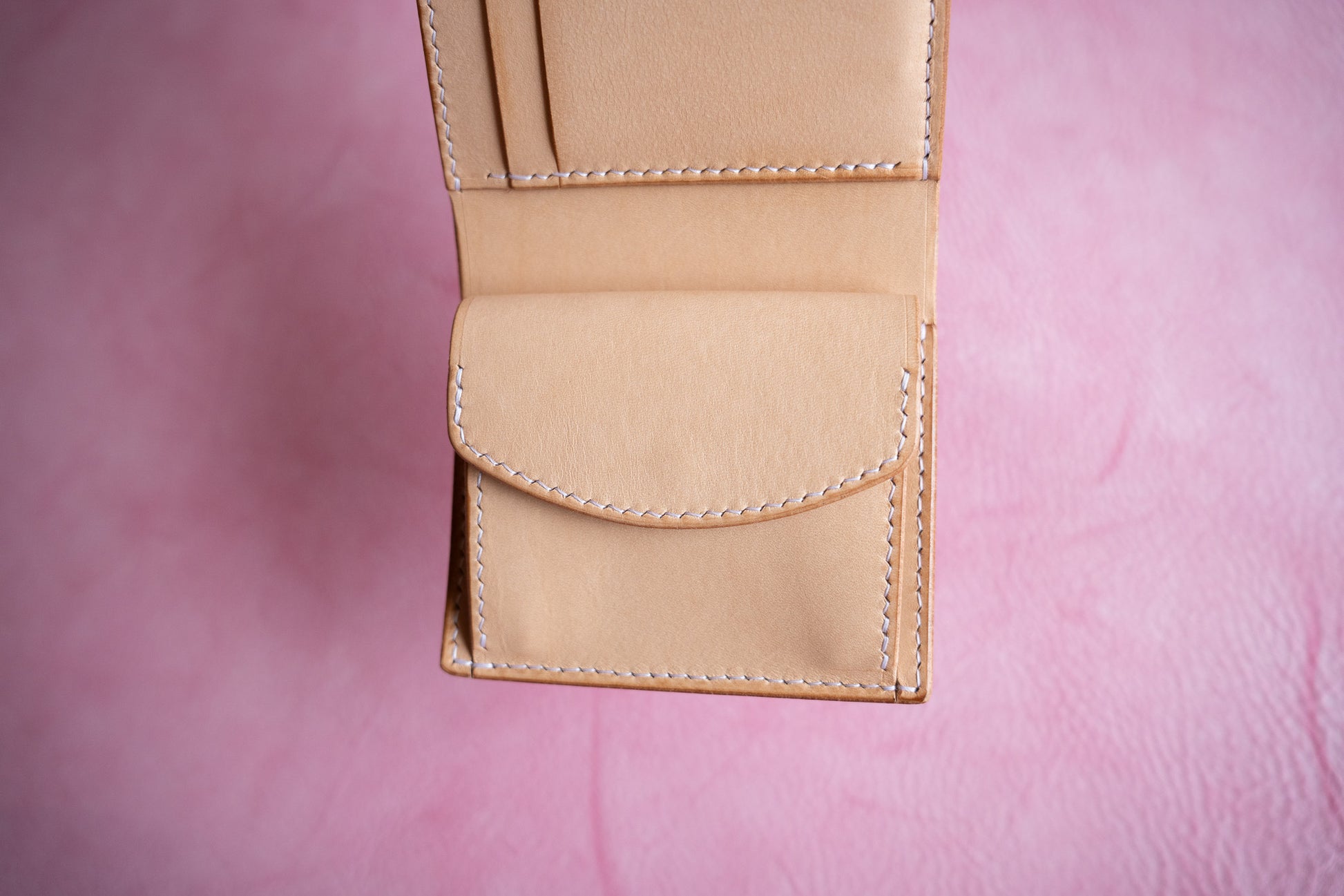 小銭入れとお札入れが大きく開き、中身がパッと見渡せる