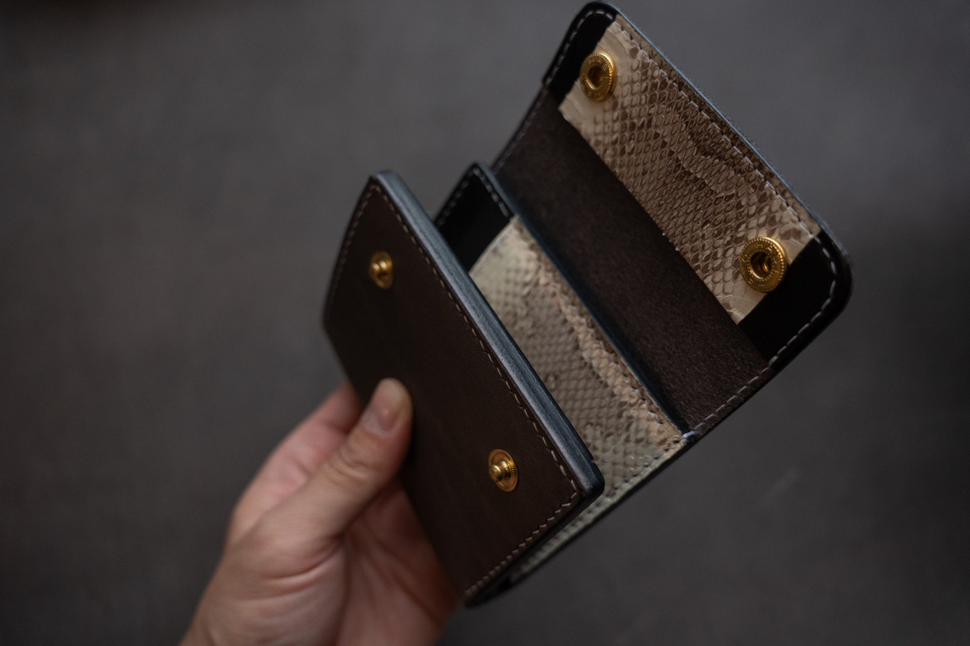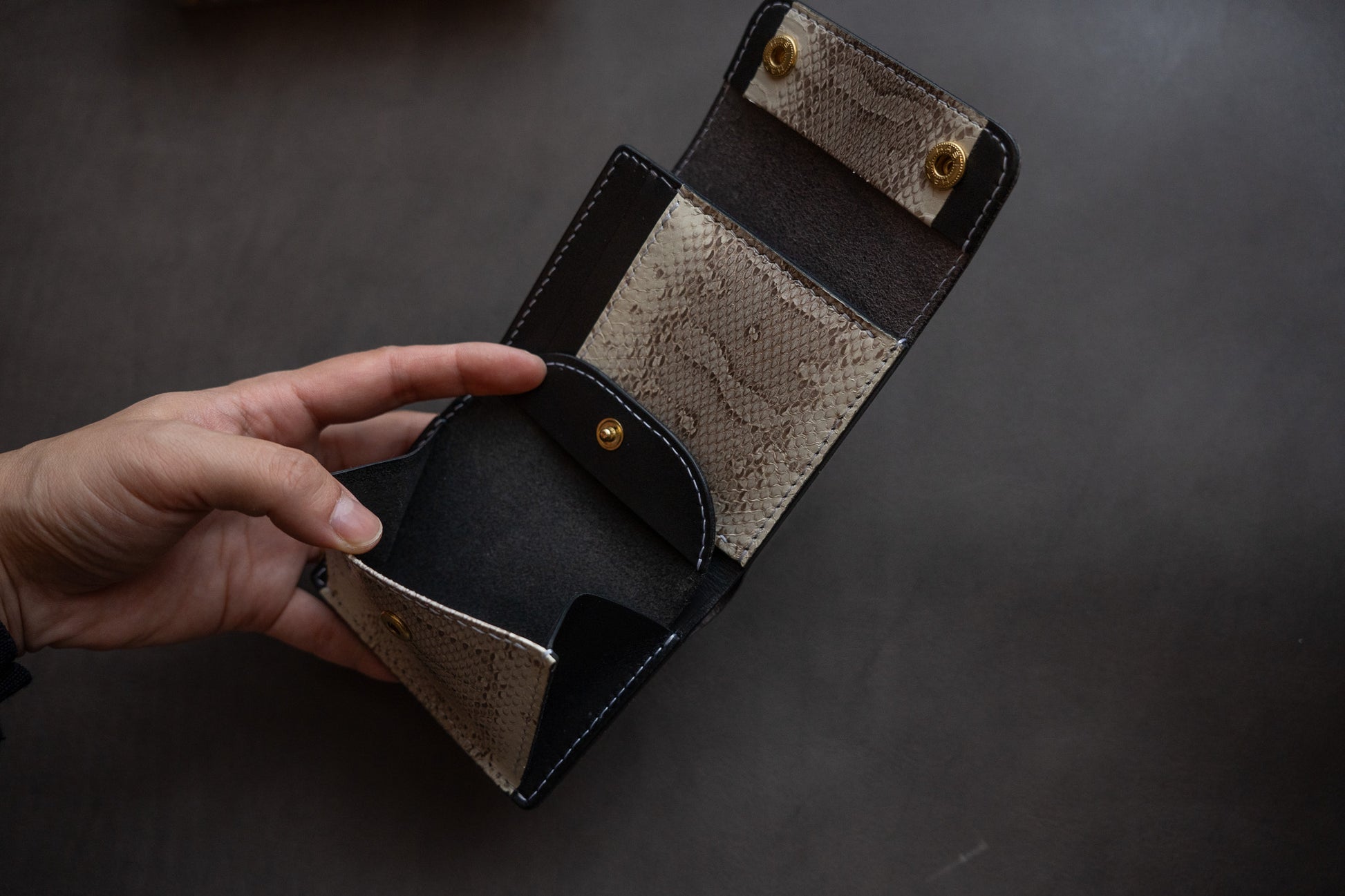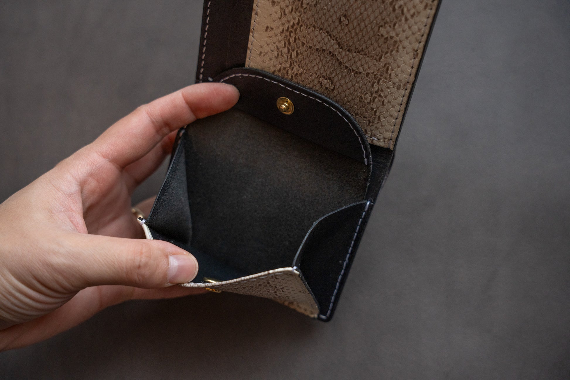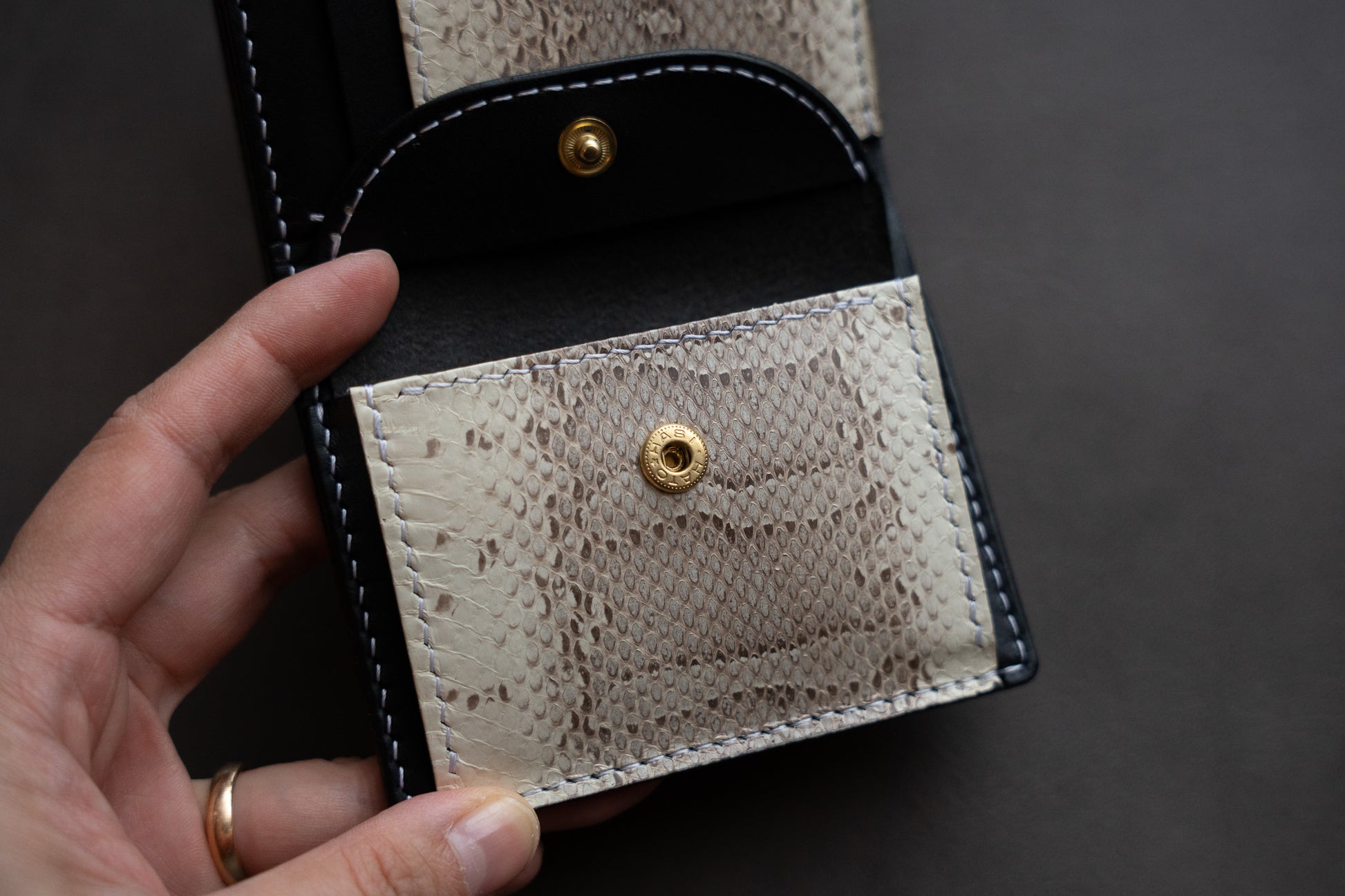 こちらはエキゾチックレザーをアクセントにしたミニ財布で