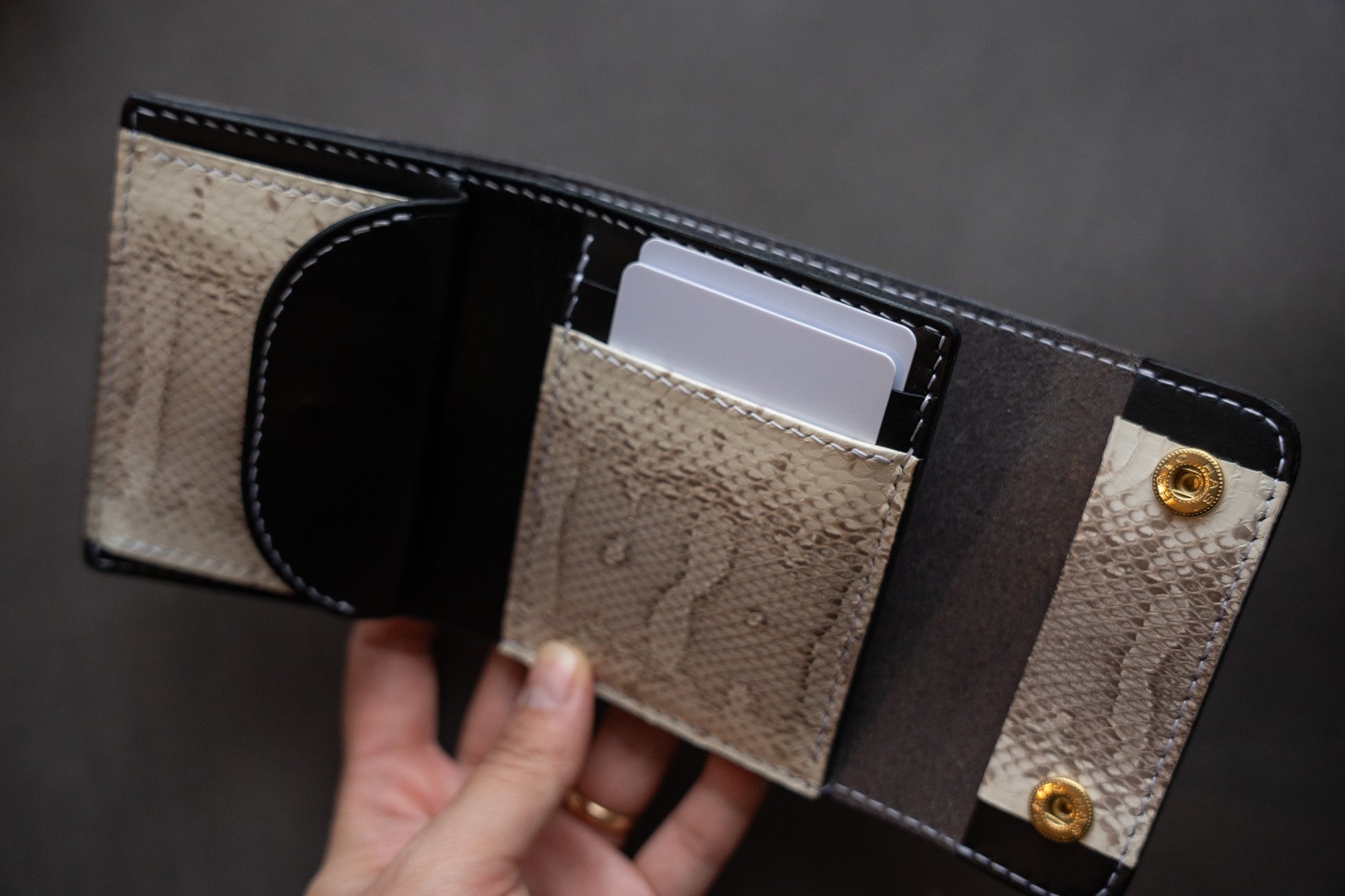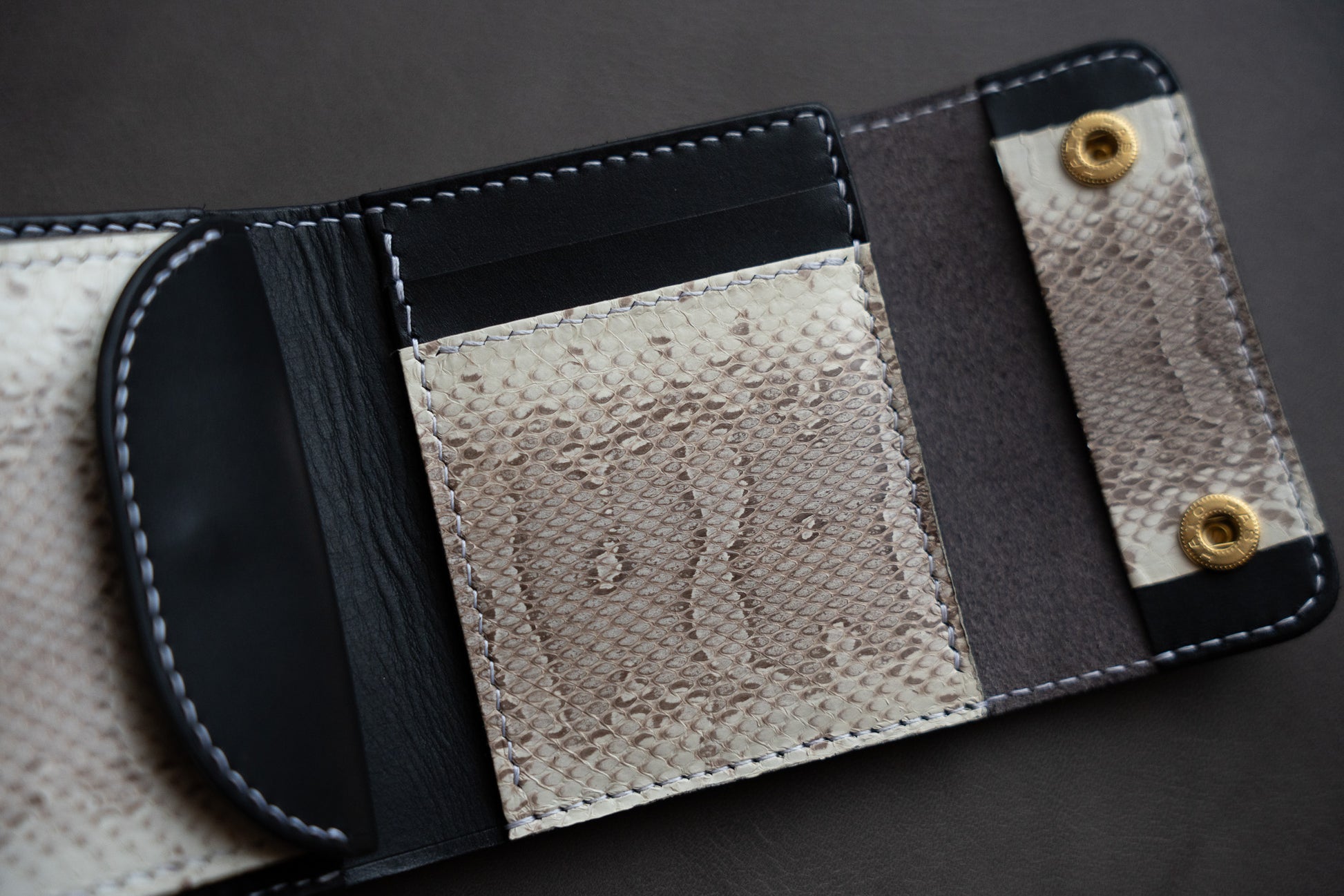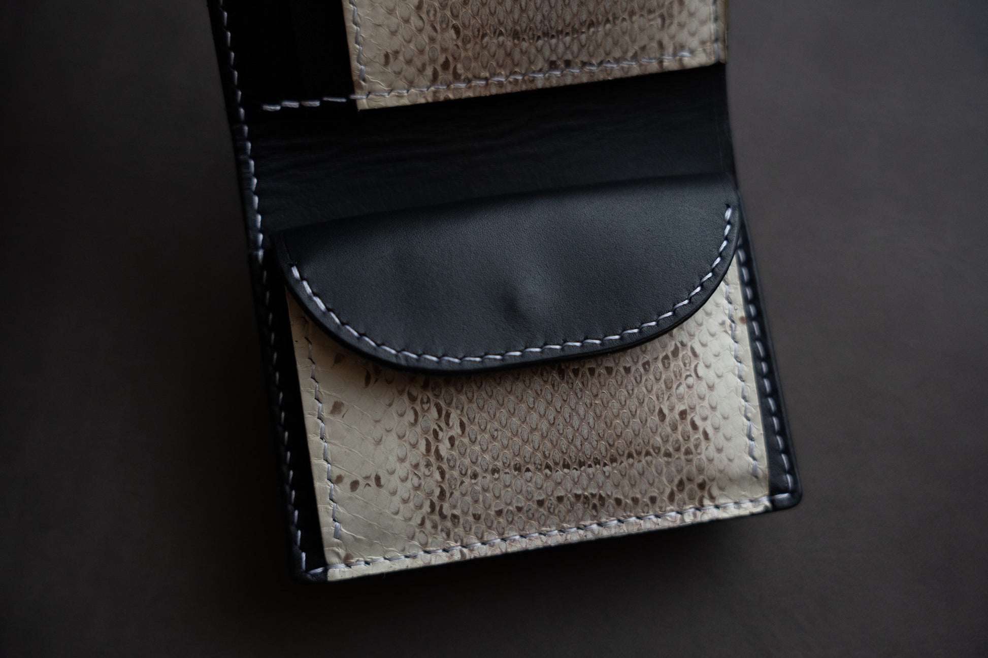 こちらはエキゾチックレザーをアクセントにしたミニ財布で
