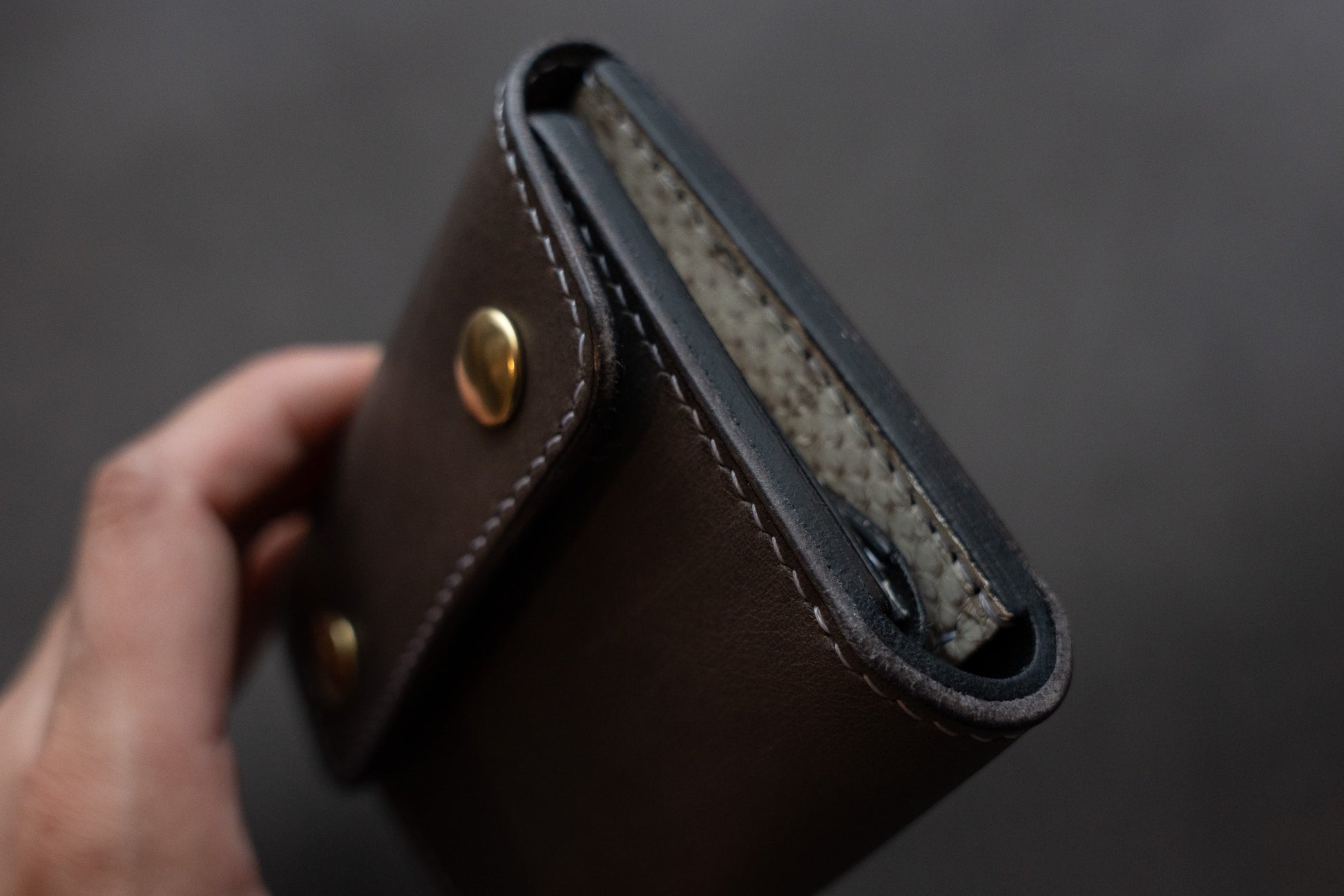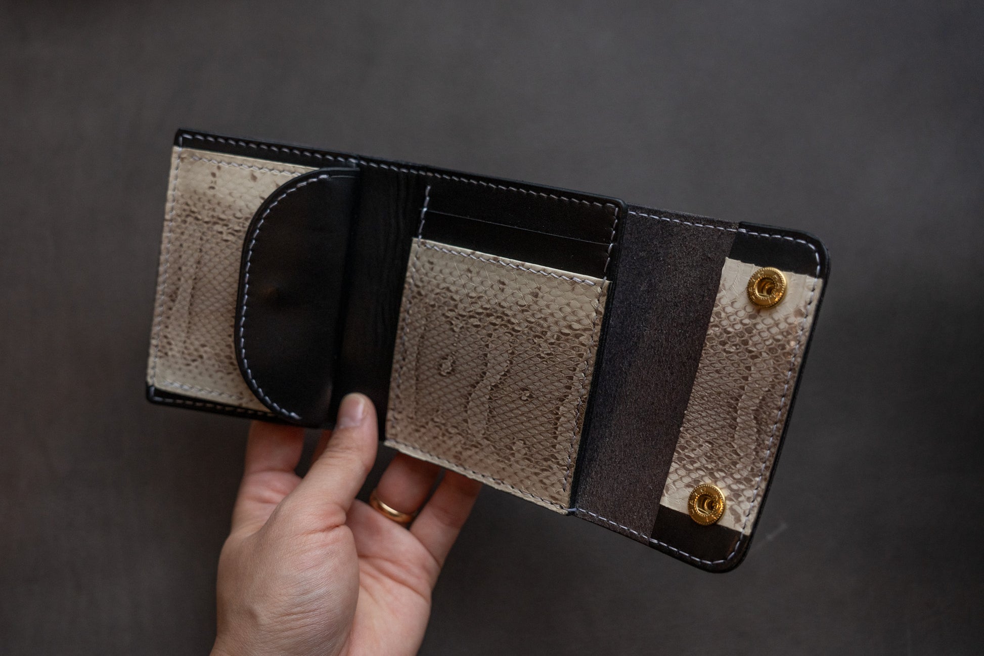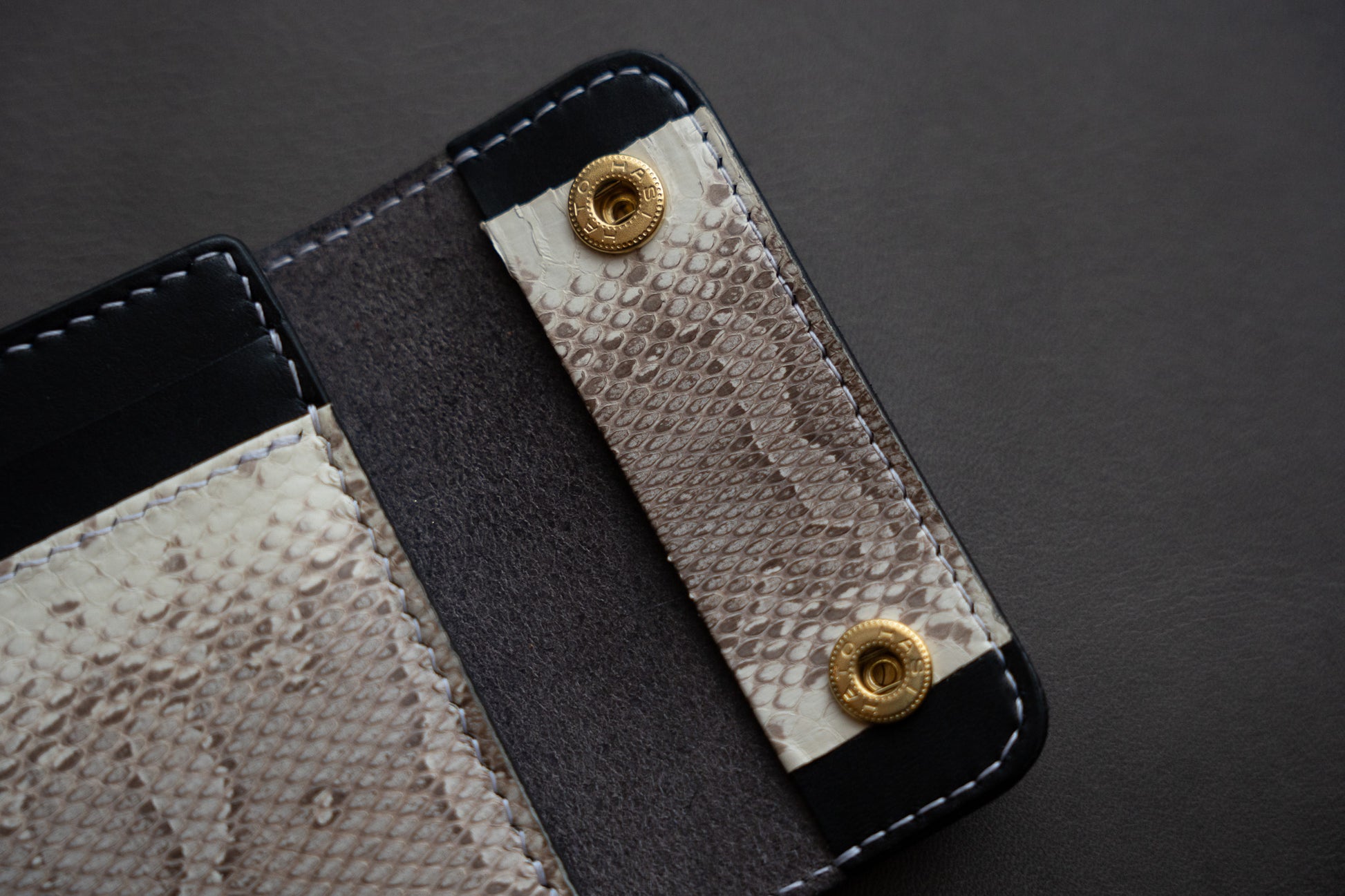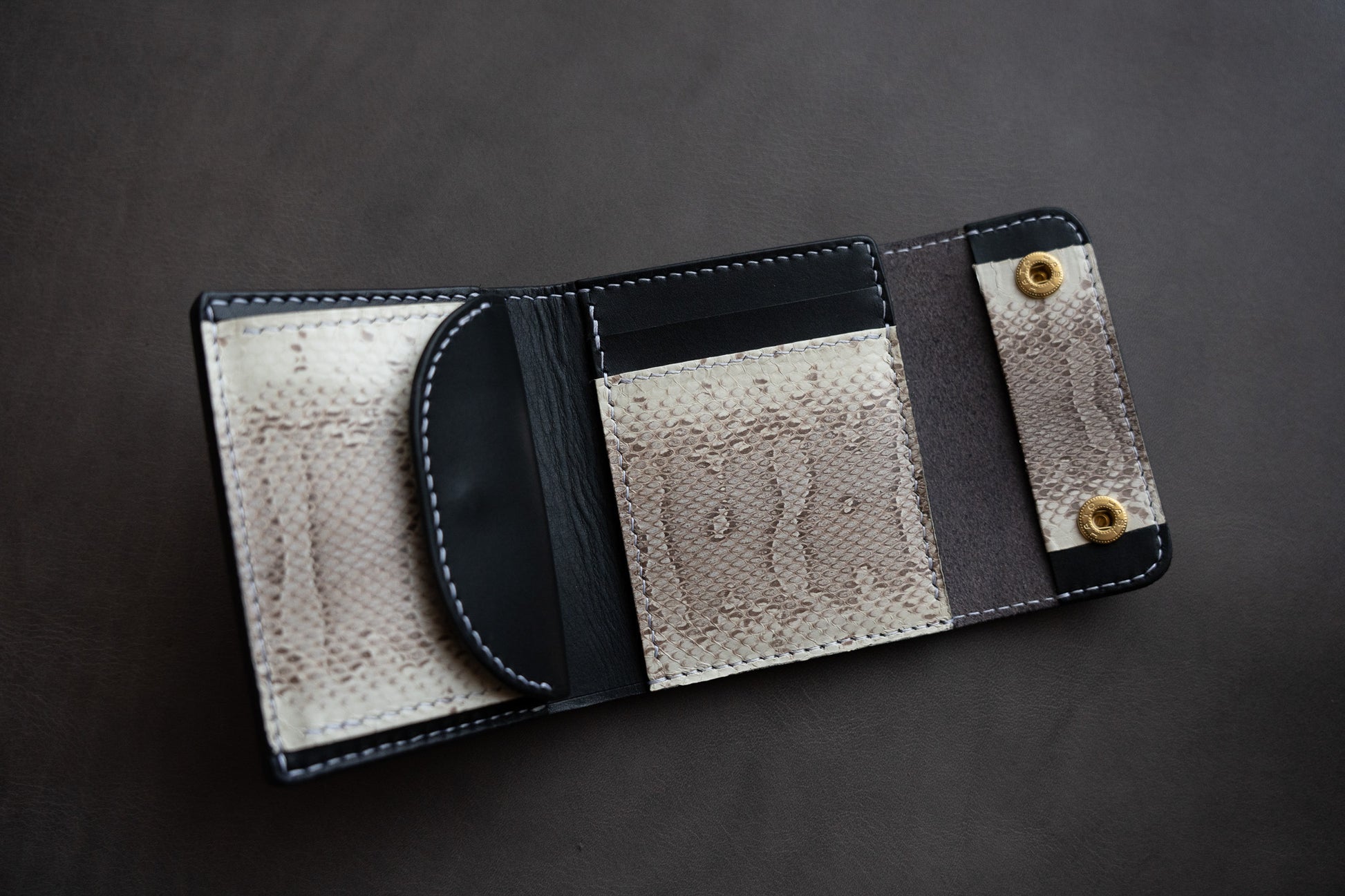 こちらはエキゾチックレザーをアクセントにしたミニ財布で