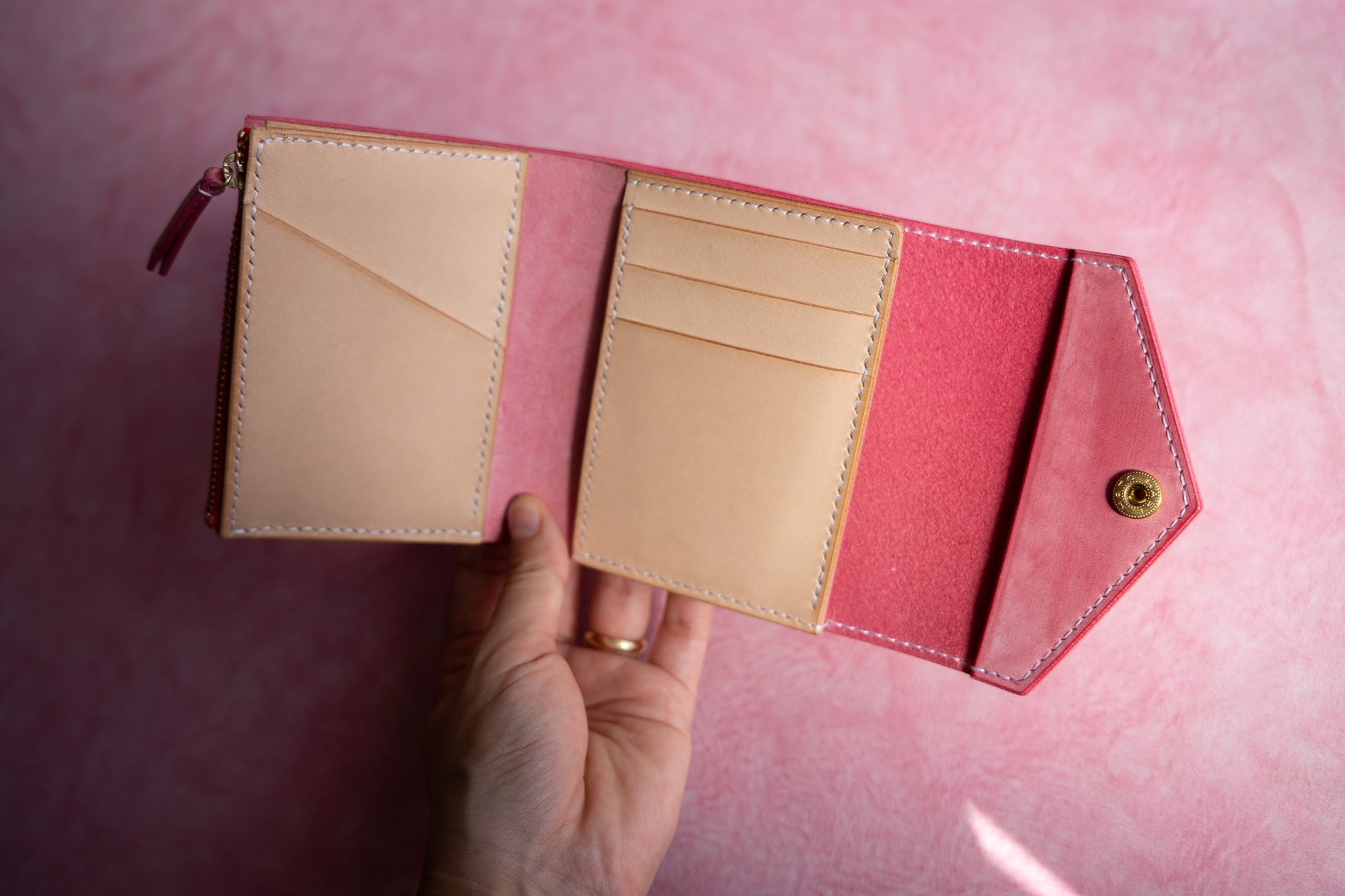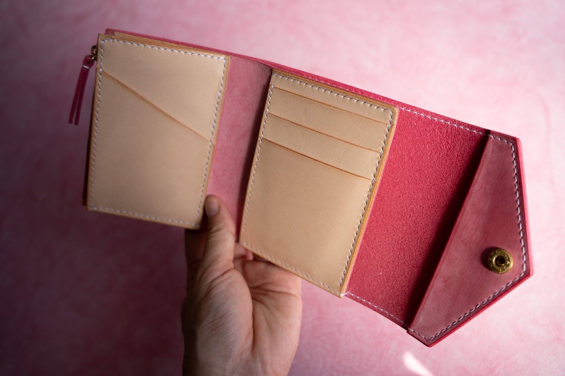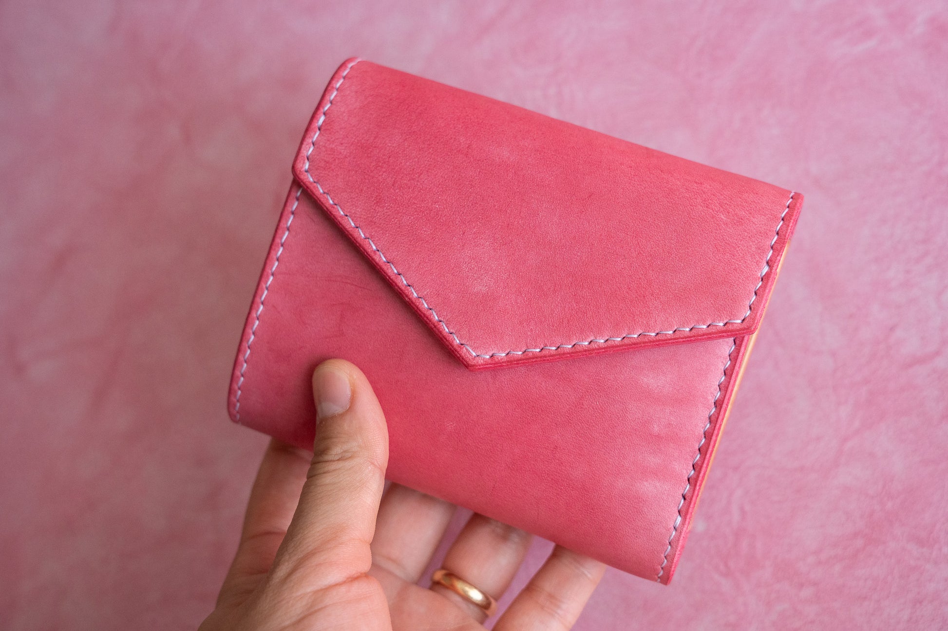 ミニ財布じゃ小さい、長財布だと大きい。その真ん中のお財布を作りました。